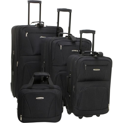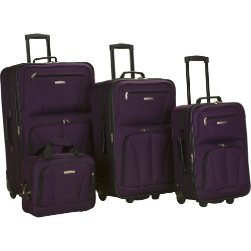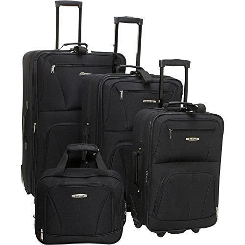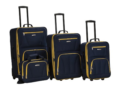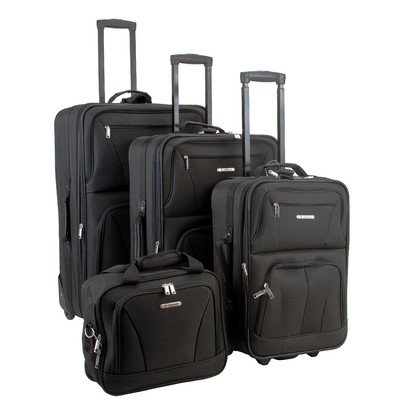Studio : Rockland Publisher : Rockland Binding : Apparel Product Description This beautiful deluxe 4-piece expandable luggage setis manufactured with a patented heavy duty eva-molded hi-count fabric. this set is perfect for the serious and experienced traveler manufactured with the very best heavy duty polyester and pvc backing, this luggage set is designed for the traveler on the go and comes with three expandable uprights and a flight tote bag. it comes packed with features including: an inside retractable handle, ez-roll in-line skate wheels, back zippered secured pockets, top and side comfort grip handle, stability bars at the bottom to avoid tilting, and locks and keys. upright features include: clear in-line skate wheel system for smooth ride push-button self-locking internally stored retractable handle system ergonomic and comfortable padded top and side grip handles two front full size zipper-secured pockets three internal organizational pockets for all your traveling needs each upright's interior is fully lined with a durable and elegantly imprinted lining elegant silver pewter heavy duty industrial hardware carry-on flight tote bag features include: elegantly imprinted full interior lining detachable and adjustable non-slip shoulder strap spacious main compartment maximum strength industrial hardware 19-inch carry-on upright: 19 inches high x 13 inches wide x 8 inches expandable to 10 inches deep. 6 lbs. 24-inch upright: 24 inches high x 16 inches wide x 10 inches expandable to 12 inches deep. 8 lbs. 28-inch upright: 28 inches high x 18 inches wide x 12 inches expandable to 14 inches deep. 9 lbs. carry-on flight tote bag: 12 inches wide x 11 inches high x 5.5 inches deep ? 1 lb.