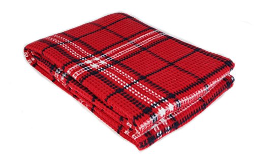 Arus Scotch Collection Tartan Plaid Design Cotton Blend Throw Blanket, Red Label