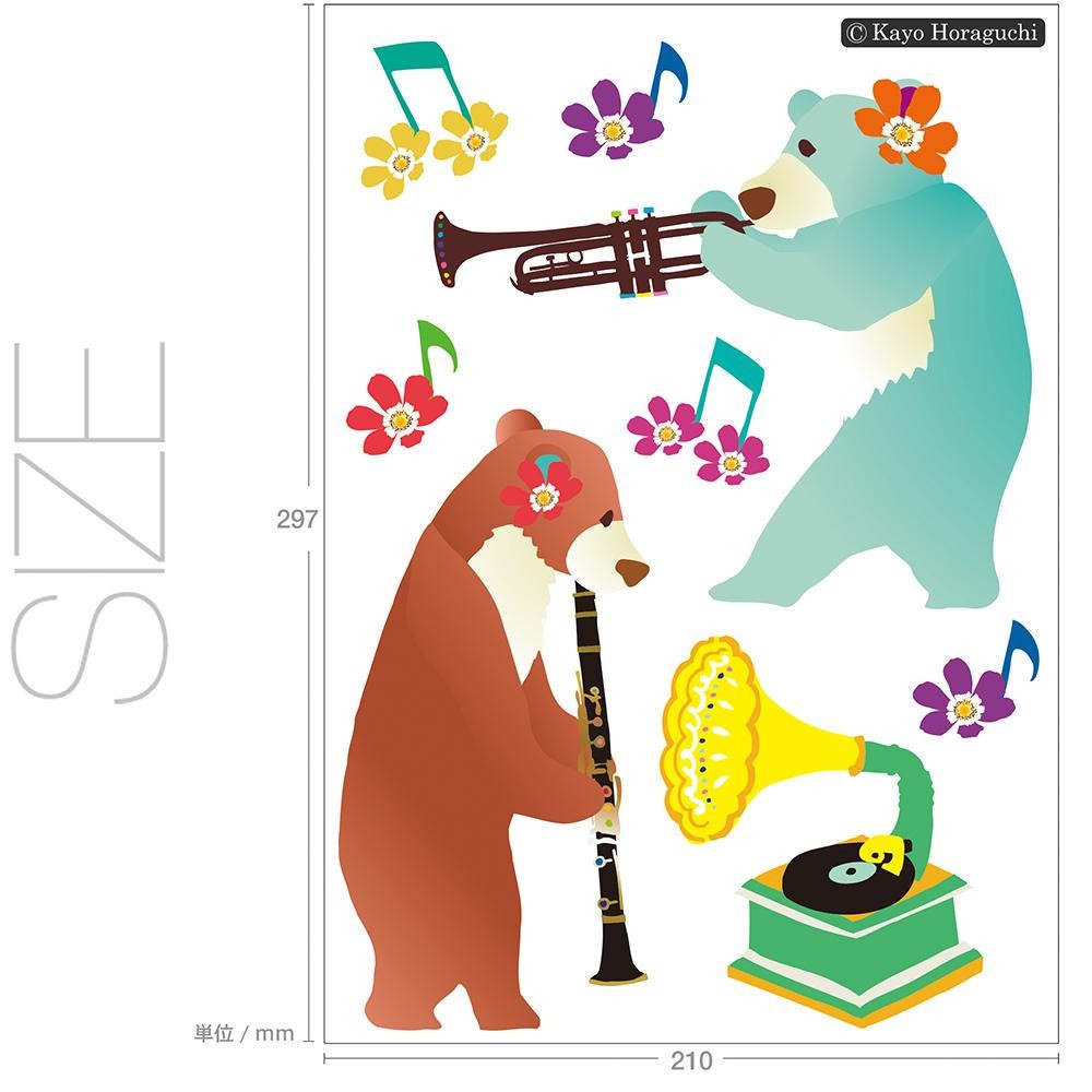 パステルカラーの優しいグラデーションがキュートなクマさんたちが、お花の音符のコンサートを繰り広げているウォールステッカーです。