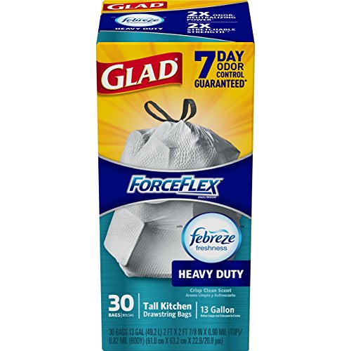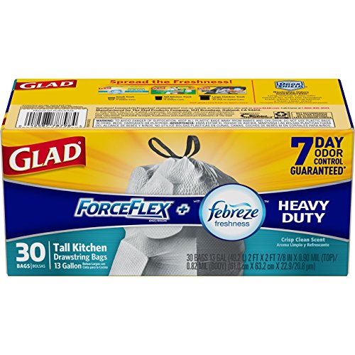 Glad ForceFlex OdorShield Tall Kitchen Drawstring Trash Bags - Febreze Crisp Clean - 13 Gallon - 30 Count