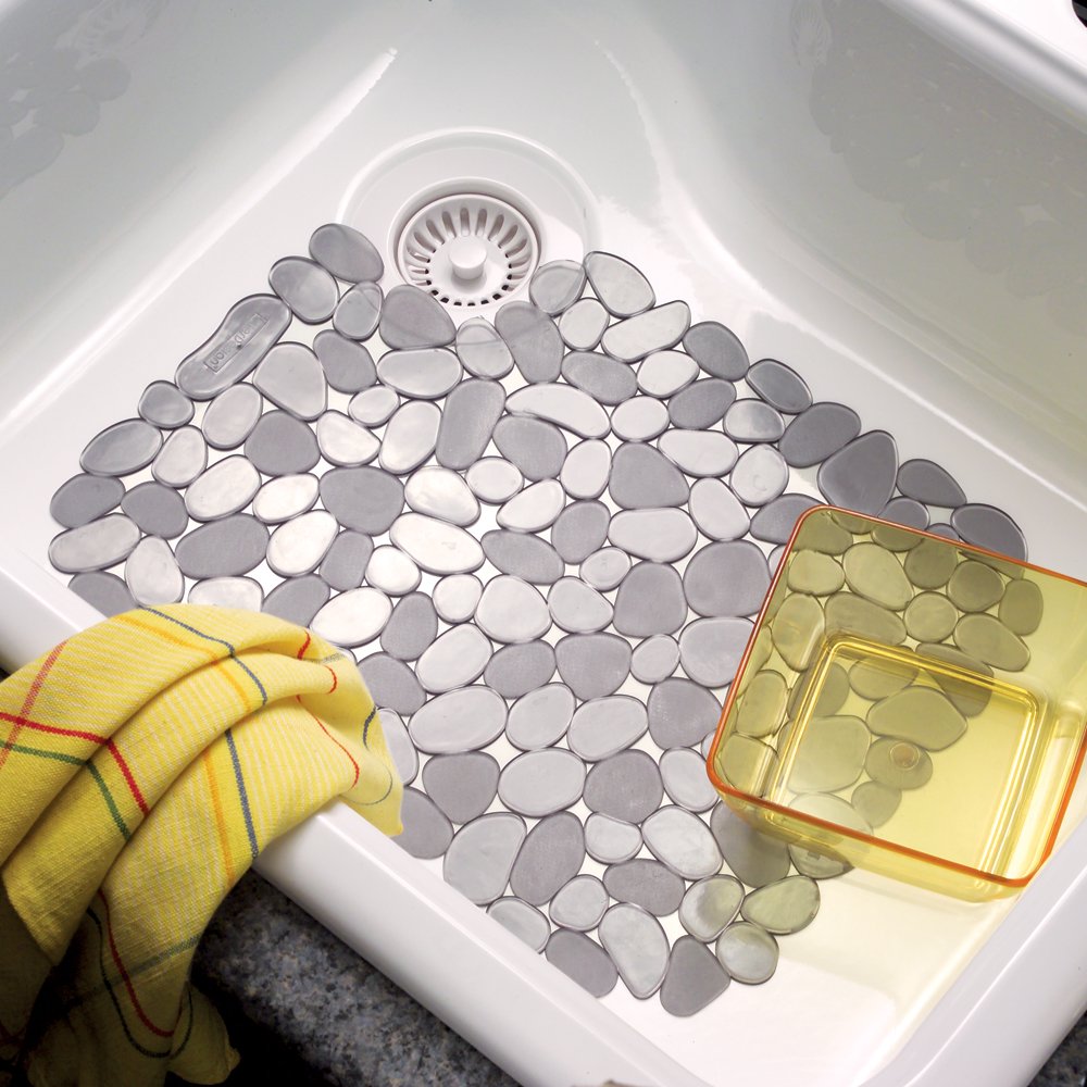 Add grip and protection to your sink with Orbz mats. Durable PVC will protect delicate dishes from hard sinks and sink finishes from sharp utensils. Pebble design allows mats to be customized for various sizes and drains by cutting away pebbles. Choose from a variety of shapes and sizes.