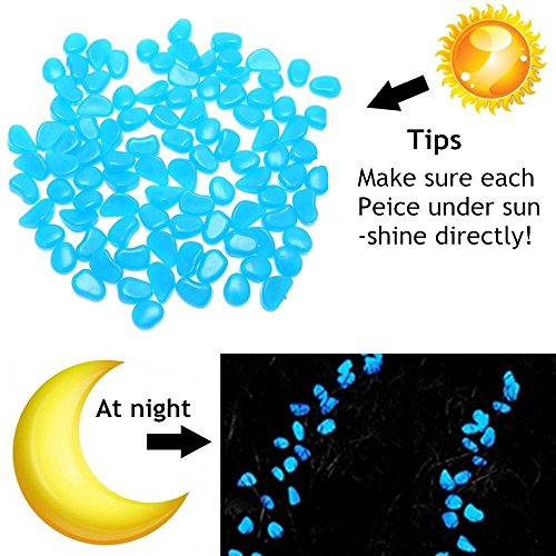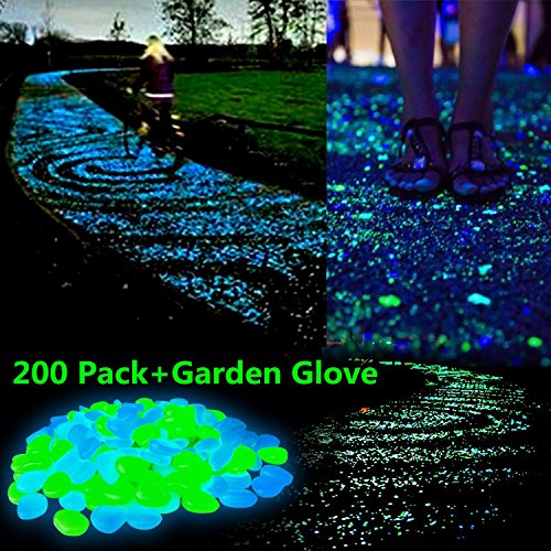 Glow in the Dark Garden Pebbles Stone for Walkway Yard and Decor DIY Decorative Gravel Stones in Blue & Green (200, Blue & Green)