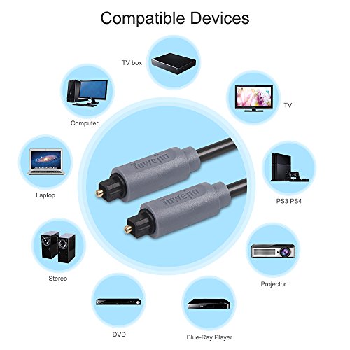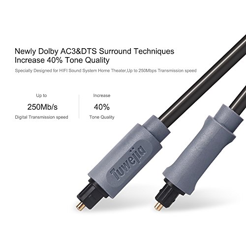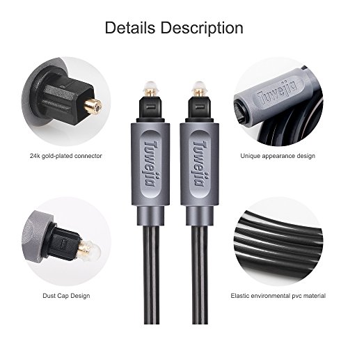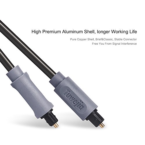 Studio : Tuwejia Publisher : Tuwejia Binding : Electronics Product Description Tuwejia Digital Optical Cables are manufactured from high-quality optical fiber with a polished lens and gold-plated collar. The stylish braided net jacket adds flexibility and durability for years of listening pleasure. A 1mm low-loss core conductor maintains an accurate digital signal. Optical cables transfer the signal using light; thus completely eliminating any chance for RFI, EMI or ground loop interference. Connect your DVD, CD, Mini Disc, DAT, Game Console or other digital audio equipment for clear, full and richly detailed sound. 1.Connectors:TOSLINK to TOSLINK 2.Low-loss core ensures low distortion 3.Non-slip rubber grip connector provides for easy installation 4.?Flexible jacket makes installation easy 5.Protective plastic cover protects lens from dust, dirt and other material 6.Digital Audio Cable provides you the cleanest possible signal, even at extreme volume levels. 7.?These cables use 1mm low-loss core, low-jitter synthetic fiber and heavy metal connectors to dampen vibration, giving you the ultimate listening experience. 8.Optical cables transfer the signal using light; thus completely eliminating any chance for RFI, EMI or ground loop interference. 9.?GOLD-PLATED FERRULE prevents corrosion and provides for maximum protection of the fiber tip. 10.Guaranteed reliability with a lifetime warranty