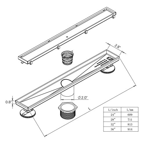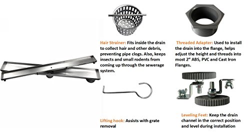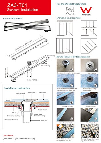 - √ Easy adjustable leveling feet support the channel body during installation. A removable grate makes it easy to clean; The Linear shower drain is the invisible looking design,you can insert any cutted tile on the top of the grate by yourself