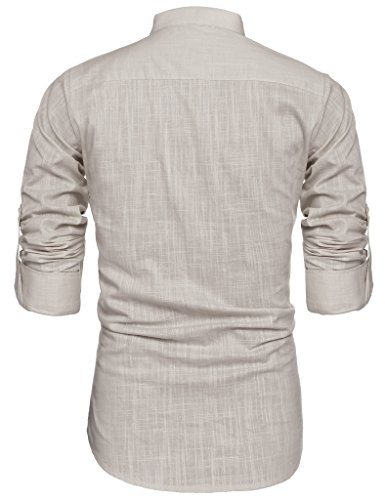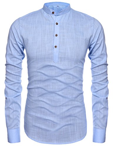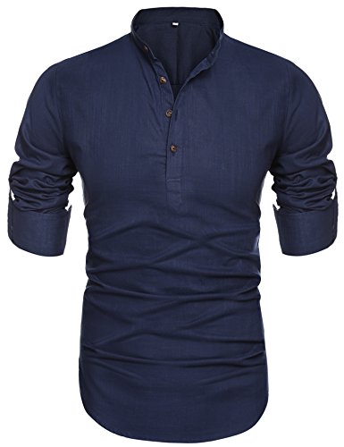 -. Feature : ☛ 4 Button, Mandarin collar, Henley neckline, Long sleeve(Roll-Up), Linen / ☛ Special linen blend fabric comes in standard U.S. sizes / None span / Slim Fit: not too loose, not too tight / It fits on the body perfectly / ☛ Slim Fit / Classy Tailored look with Jeans or Chinos / ☛ Mens Slim Fit Ultra Light Cotton Linen Blend Long Sleeve Popover Work Shirt / ☛ Appropriate for Casual Attire, Dressy and Business Casual, Daily Look, City Casual, Semi Formal, Business Casual, Formal Wear, Business Formal