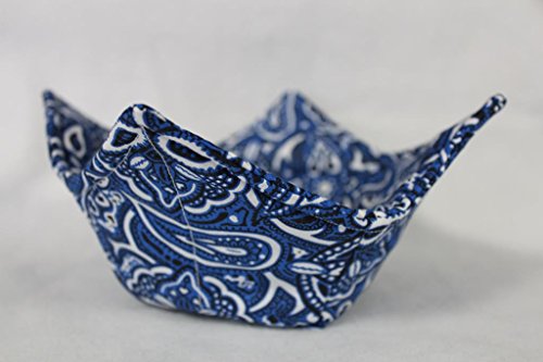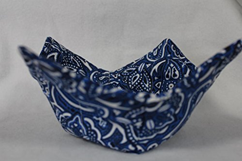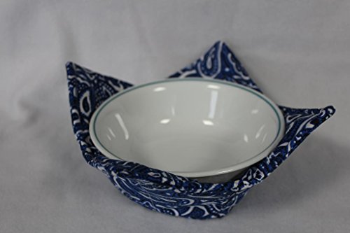 Product Description Reversible Quilted Microwave Bowl Cozy Saves hands from the heat or cold Great for reheating food in the microwave Also for cold foods, such as ice cream Recommended for only 2-3 minutes at a time in microwave. Best for just reheating items, not for long periods of cooking. Don't leave unattended in microwave during cooking. Machine wash and dry. 100% Cotton. Approx 9", will fit a 7" bowl or a standard cereal size bowl. Handmade in a smoke free home 0
