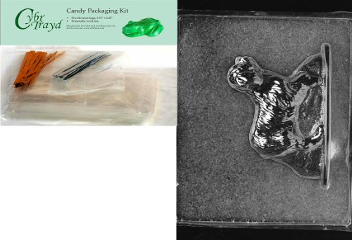 Cybrtrayd "Cocker Spaniel" Dog Chocolate Candy Mold with Packaging Bundle of 50 Cello Bags, 25 Gold/25 Silver Twist Ties and Chocolate Molding Instructions