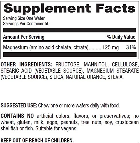 Our Chewable Magnesium crème flavored wafers contain 125mg of magnesium, amino chelate and citrate that help