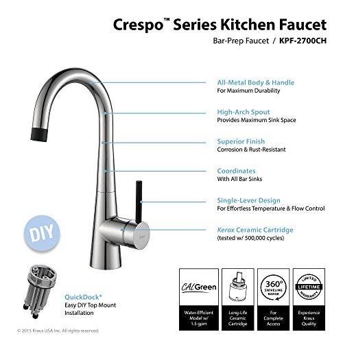 Kraus KPF-2700CH Modern Crespo Single Lever Kitchen Bar Faucet, Chrome