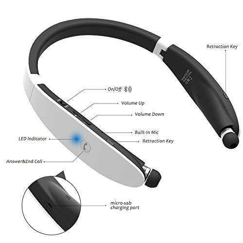 Title : Wireless Bluetooth 4.1 Foldable Headsets, GRDE Retractable Headphones Neckband Style Sports Earphones Earbuds with Microphone, Compatible for Most Bluetooth Devices