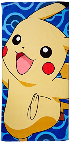 Show off your favorite Pokémon character while at the beach or by the pool with this Pikachu beach towel by the Northwest company. Super colorful and vivid, these 28"x 58" beach towels are quite the attention Grabber on those sunny summer days. Soft and cozy, these 100% cotton towels are the perfect summer accessory to dry off comfortably after taking a Dip. Machine washable.