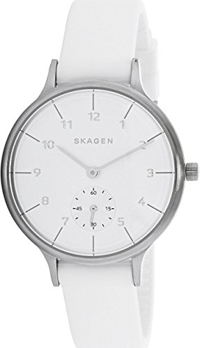 This Anita watch from Skagen features a sandblast dial, numeric indexes and two-hand movement with a lower subeye that tracks seconds.