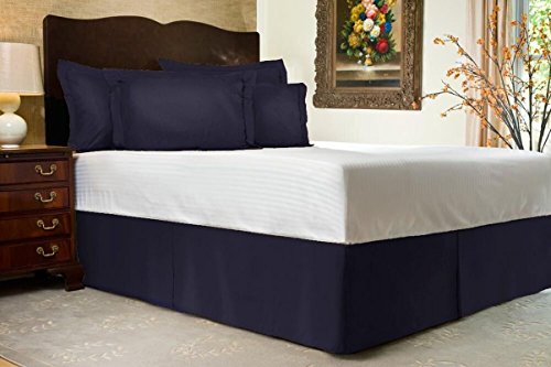 Easy Fit 1-PC Bed Skirt ( Dust Ruffle ) 300 Thread Count Luxury Egyptian Cotton Solid Pattern With 18" Inch Drop Length ( King Size, Navy Blue )