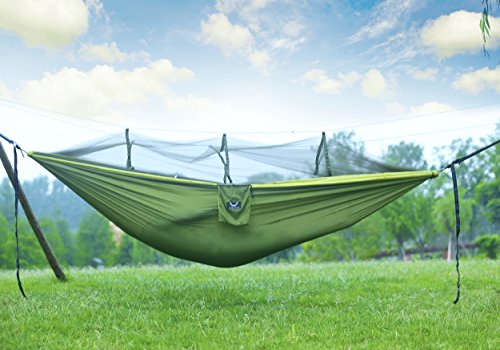An mosquito hammock camping tent with mosquito FREE : The hammock mosquito net is made from Heavy Grade Polyester fabric. This bug netting is premium quality so you can relax bug and mosquito free. And the nets won’t pull or tear out hang tabs where others fail.