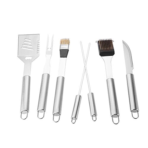 - TOOL KIT CONTAINS: All tools are meant to make your any BBQ and grilling tasks easy and enjoyable experience. Kit include: barbecue fork, barbecue folder, barbecue shovel, just brush, barbecue knife, hair sweep, steak knife, corn fork.