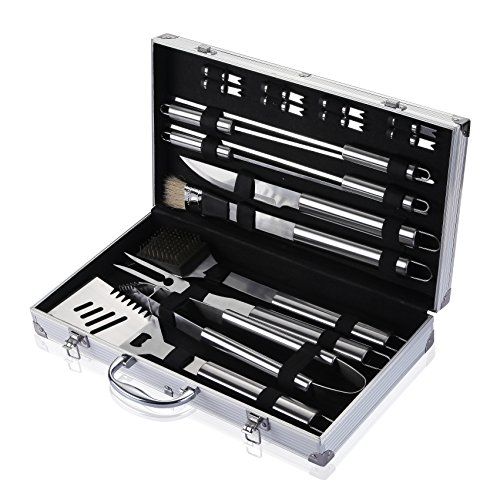 Comfy Mee Barbecue Grill Utensils BBQ Grill Tools Set-18 Piece Stainless Steel BBQ Accessories in Aluminum Storage Case