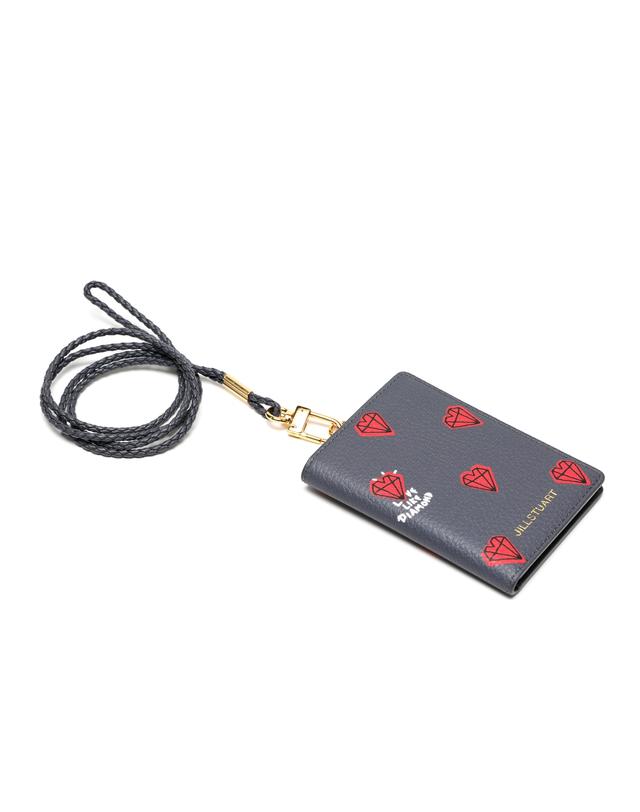 질스튜어트 고유의 귀여운 하트 다이아몬드 패턴으로 포인트를 준 목걸이형 카드지갑 입니다.