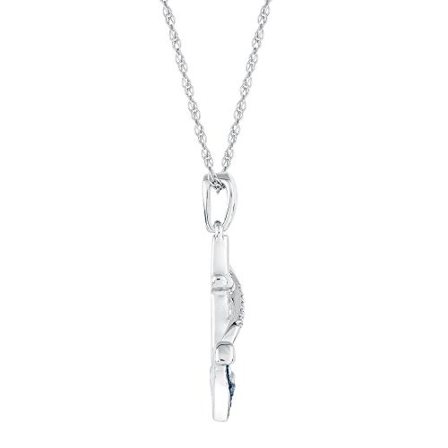 Diamond and Blue Diamond Anchor Pendant 1/15ctw