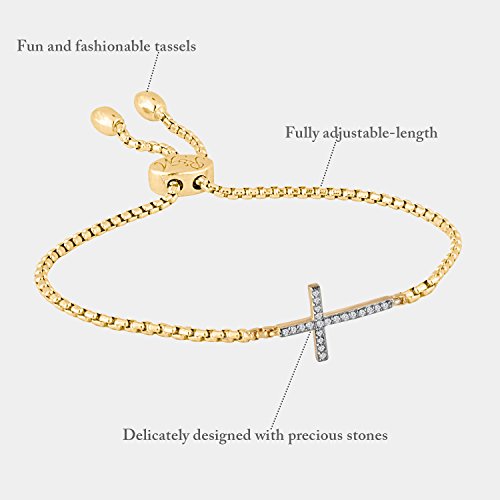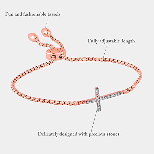 -. Binding : Jewelry -. Brand : Rhythm & Muse -. Department : womens -. Feature : This fully adjustable bracelet will fit almost every size hand. / Fun and fashionable tassels / Includes a special gift box and gift bag / Available in 3 options: yellow gold bracelet with cross pendant, rose gold bracelet with cross pendant, sterling silver bracelet with cross pendant / This diamond bracelet has a total carat weight of 0.08 carats -. Label : Rhythm & Muse -. Manufacturer : Rhythm & Muse -. ProductGroup : Jewelry -. ProductTypeName : FASHIONNECKLACEBRACELETANKLET -. Publisher : Rhythm & Muse -. Studio : Rhythm & Muse -. Title : Rhythm & Muse Diamond Cross Adjustable Infinity Bracelet (2/25 ct)( Yellow / Rose Gold, Sterling Silver)