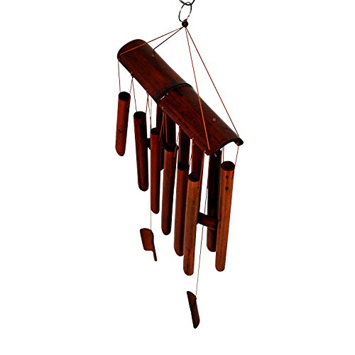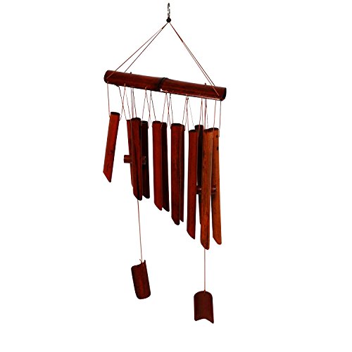 Bamboo Wind Chimes - Wood Wind Chime - Large Brown Indoor Outdoor Wooden Melody - 19"