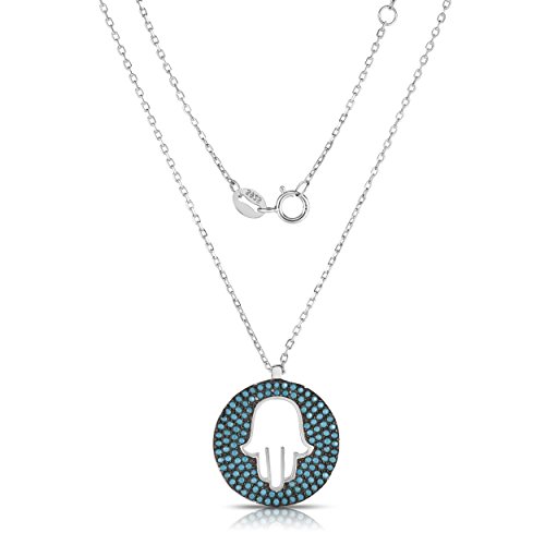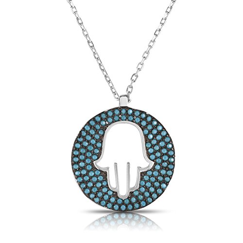 -. Binding : Jewelry -. Brand : Unique Royal Jewelry -. Color : Silver -. Department : womens -. Feature : 925 Solid Sterling Silver Nano Pendant with Turquoise Hamsa link necklace. / Necklace is adjustable to length of 17", 18" or 19" to accommodate Comfort and personal style. / Chain is 1.2mm Cable Link. Total Weight of Sterling Silver is 2.9 gr. / A total of 137 Turquoise pave set. / Elegant Gift Box Included. -. Label : Unique Royal Jewelry -. Manufacturer : Unique Royal Jewelry -. ProductGroup : Jewelry -. ProductTypeName : FASHIONNECKLACEBRACELETANKLET -. Publisher : Unique Royal Jewelry -. Studio : Unique Royal Jewelry -. Title : 925 Solid Sterling Silver Nano Turquoise Open Hamsa Necklace with Adjustable Length.