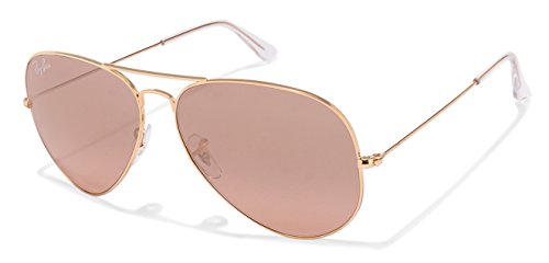 Ray-Ban RB3025 Aviator Large Metal Mirrored Unisex Sunglasses (Gold Frame/Crystal Brown Pink Silver Mirror Lens 001/3E, 62)