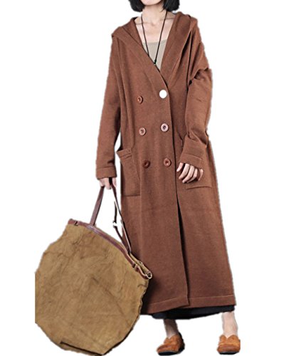 -. Title : Yesno JU9 レディースロングルーズセーターコートカジュアルフード付きアウトレットダブルブレストボタンロングスリーブ2ビッグポケット