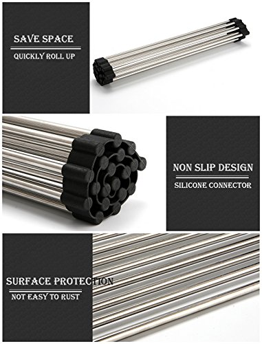 MATERIAL: Constructed from 304 Stainless Steel and non-slip silicone connector, sturdy and durable, sanitary clean and will not rust.