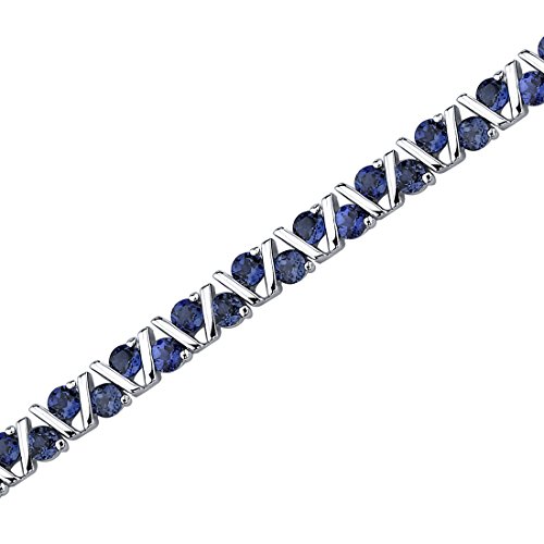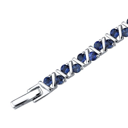 -. Feature : Created Blue Sapphire, Ceylon Blue Hue with Brilliant Sparkle / Bracelet is in .925 Sterling Silver and finished with Rhodium / Top Quality Craftsmanship / Exceptional Styling / 30 Day Return Policy