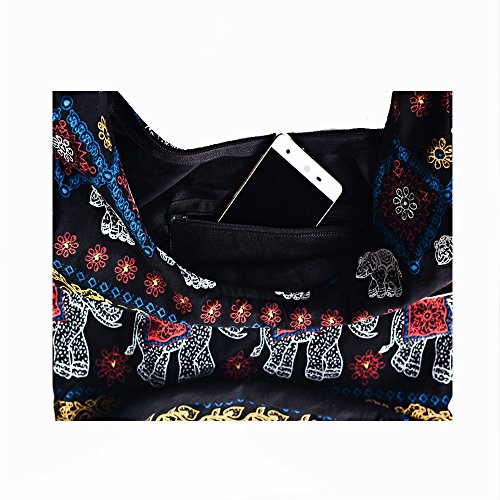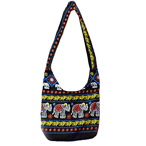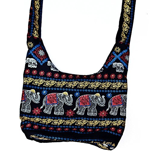 Miss Bangkok Hippie Elephant Sling Crossbody Bag Shoulder Bag Purse Thai Top Zip Handmade New Color Black