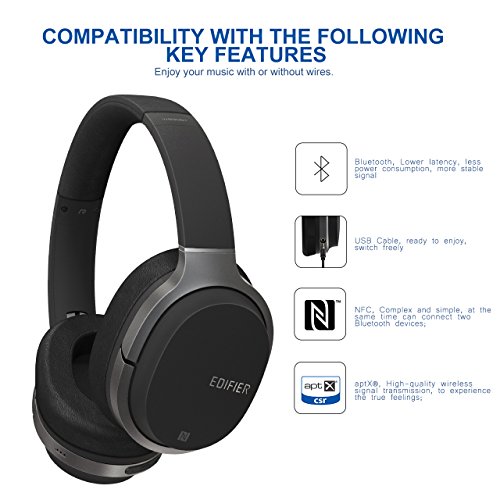 -. Binding : Electronics -. Brand : Edifier -. Feature : 【EXQUISITE MATERIALS】: Edifier is an expert in both comfort and sound, The W830BT earcups are made with extra soft earpads and covered synthetic leather, ensuring a comfortable wearing experience all day; / 【ULTRAPORTABLE】: The earcups on the W830BT Bluetooth headphones are designed to rotate 90 degrees to lay flat or you can fold in the earcups themselves to make them more compact. This makes them easier for travel to fit inside a carrying case; / 【OUTSTANDING CONFIGURATION】: The stainless steel in the headband is a flexible steel that can handle any amount of stress placed under it. The durability, functionality, and hi-tech design of the W830BT Bluetooth headphones are an audiophiles ideal set up; / 【OPERATING TIME】: Have access to 95 hours of audio playback on a full charge and 1500 hours on standby. Connect to up to 2 devices at the same time and quick connect with NFC pairing. Experience true wireless Bluetooth audio with Bluetooth v4.1 aptX codec; / 【SOUND QUALITY】: A new generation of high-quality 40mm diameter NdFeB unit, open sound field, sound quality and smooth. Fine Naiting, can easily control a variety of music types, sound children different, strength full. -. Label : Edifier -. Manufacturer : Edifier -. MPN : SHE-W830BTM-0202 -. PartNumber : SHE-W830BTM-0202 -. ProductGroup : Speakers -. ProductTypeName : HEADPHONES -. Publisher : Edifier -. Studio : Edifier -. Title : Edifier W830BT Wireless Over-ear Headphones With Built-in Mic