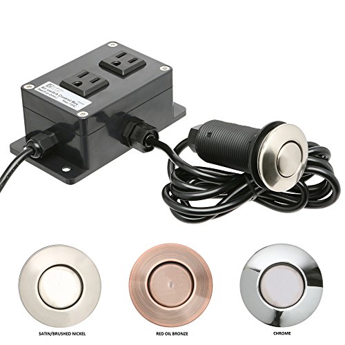 BEST VALUE Garbage Disposal Air Switch on Amazon w/ BRUSHED NICKEL BUTTON & Bonus DUAL OUTLET for Optional Hot Water Dispenser