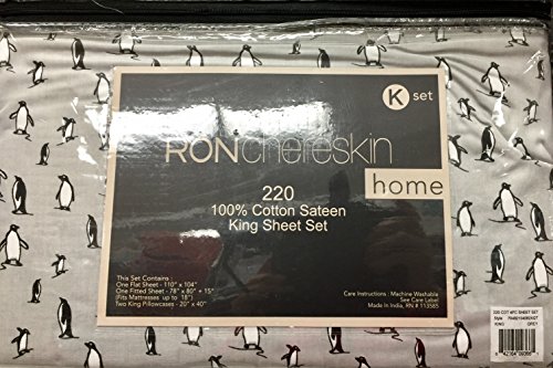 Ron Chereskin Home 100% Cotton Sateen 220 TC Sheet Set Black White Penguins (KING, Grey)