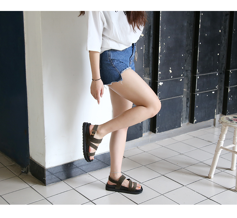 Basic strap platform sandals height 3 light 2 line khaki women 20 suede