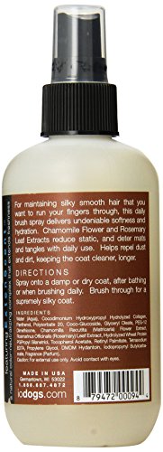 Studio : Isle of Dogs Publisher : Isle of Dogs Binding : Misc. Product Description For maintaining silky smooth hair that you want to run your fingers through, this daily brush spray delivers undeniable softness and hydration. ?Chamomile Flower and Rosemary Lead Extracts reduce static, and deter mats and tangles with daily use. ?Helps repel dust and dirt, keeping the coat cleaner, longer. 0
