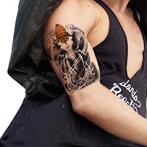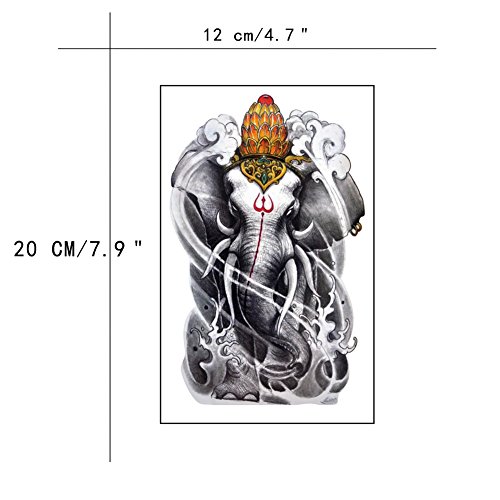 TAFLY Large Temporary Tattoos Elephant Designs Body Art for Men Fake Tattoo Sticker 3 Sheets