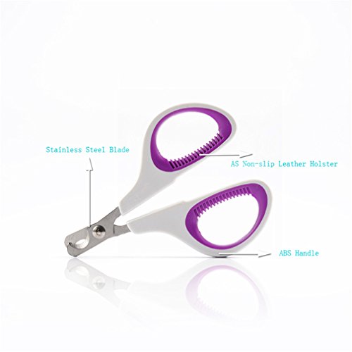 QUALITY: a?†These nail clippers are constructed with High Grade Stainless Steel for guaranteed durability. SAFE CLEAN CUTS: a?† The nail trimmer is outfitted with a sharp Angled Semi-circular open blade for a better experience. a?† The unique design gives you full visibility of what youa€TMre cutting. The unique design and the sharpness ensures nice even cuts by allowing you trim with just one cut COMFORT: a?†The nail clipper is outfitted with a comfortable non-slip handle for safe and easy grip. With this design it will be comfortable to hold for longer periods of time. The non-slip handle will help you avoid accidental nicks and cuts. IDEAL FOR SMALLER BREEDS: This nail trimmer is perfect and safe to use on Kittens, Cats, Small dogs, Rabbit, Guinea pigs, Hamsters, Birds and for most other small animals. PET PARENTS APPROVED PROFESSIONAL GROOMERS APPROVED Now you know ita€TMs possible, Start caring yourself for your peta€TMs comfort! Add to cart and order yours today! Material: TPE / PP Stainless Steel? Item Size (L x W): 10x 6.4cm / 3.93 x 2.51 in? Item Weight: 30g / 1.0oz? HOW TO USE: - Pets with white nails have a visible pink area of the nail called the quick, simply cut at a 45 degree angle and avoid cutting into the quick.