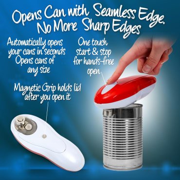 - SAFER THAN TRADITIONAL CAN OPENER - This one-touch can opener is ideal for seniors and those with arthritis, since the automatic gear system and blade do all the work for you. In addition, the sharp blade is hidden so there's very little chance of getting cut.