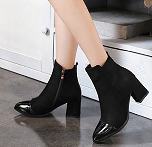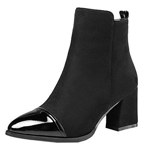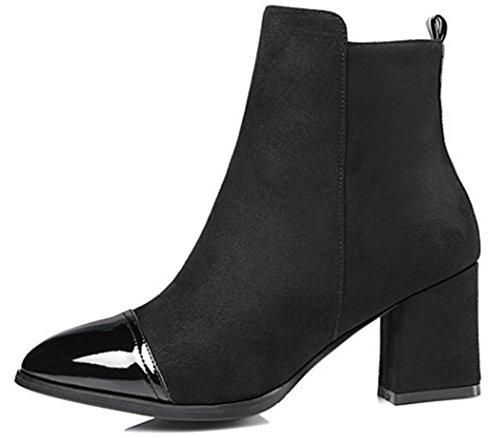 Binding : Apparel Product Description This pair of shoes is for women, girls, juniors and young ladies. You will look chic and stylish when wearing them. The heels measure 2.6 inches. You will feel comfy in their mid heels. This pair of shoes features ankle high and solid upper. You will look special in their splicing materials design. It's convenient for you to wear in their side zipper closure design. The sole is made of good rubber. You will feel comfortable in their soft bottom. You can wear them to the office, school and shopping mall. They are of high quality and durable. We promise we will provide our customer with the best quality and lowest price. Your pleasant shopping experience is our eternal pursuit. Waiting for your coming! 0
