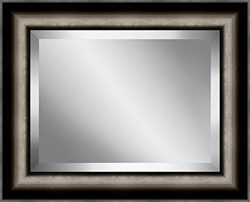 Ashton Art & Decor BPMUM203-111-2024 Black & Silver Grey Wooden Framed Beveled Plate Glass Mirror