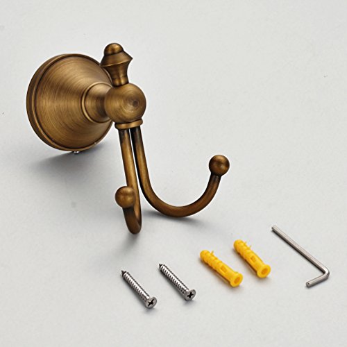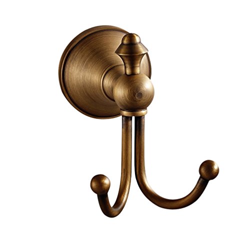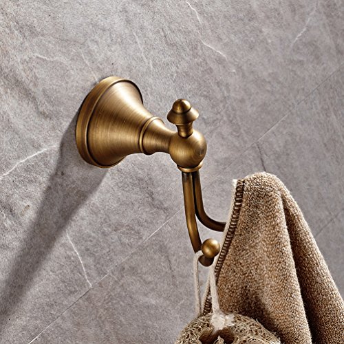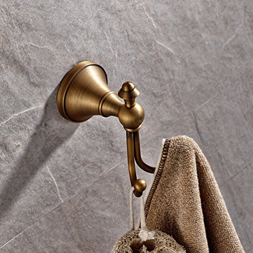 Vintage Antique Brass Finish Bathroom Wall Mount Double Robe Hooks Towel Hanger Made of Solid Brass Bath Hardware Accessory