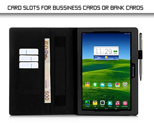 FYY Lenovo Tab 2 A10 10-inch Case - [Full Protection]Premium PU Leather Case with Card Slots, Note Holder, Hand Strap forLenovo Tab 2 A10 10-inch Black (With Auto Wake/Sleep)