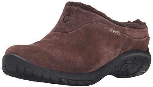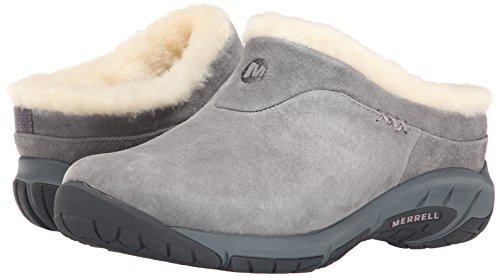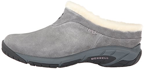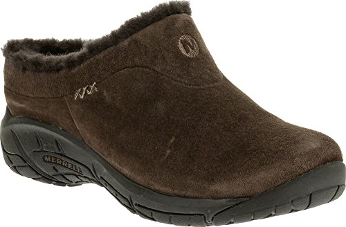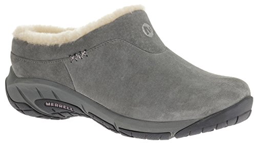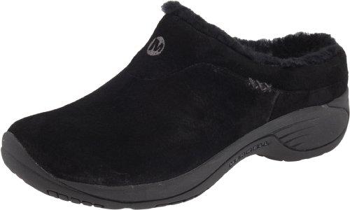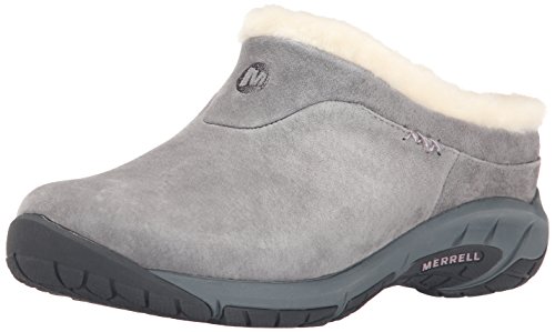 DECENT FEATURES of the Merrell Women's Encore Ice Shoe Cement construction provides lightweight durability Full grain, pig suede or nubuck leather upper Sheepskin lining Wool fleece footbed Molded nylon arch shank Merrell Q-Form Comfort EVA midsole provides women's specific stride-sequenced cushioning Merrell Air Cushion in the heel absorbs shock and adds stability Merrell Encore 2/Sticky Rubber Weight: 1 lb 5 oz
