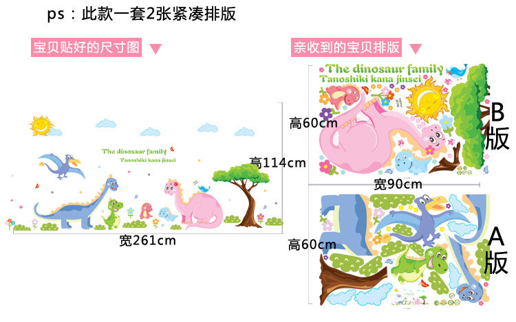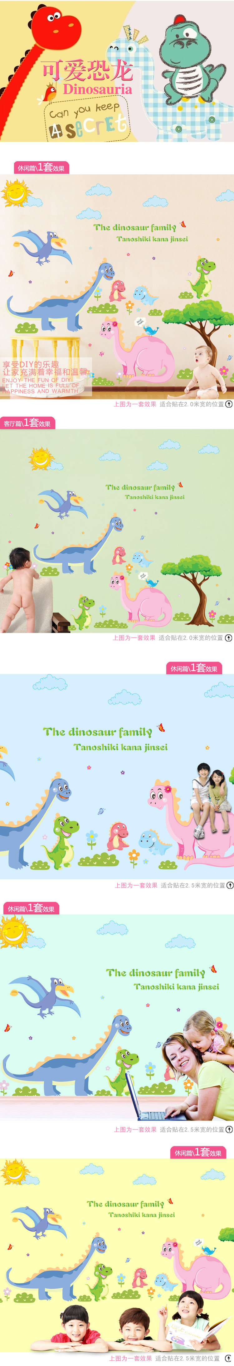 可移除墙贴纸/可爱恐龙家族/墙纸贴画儿童房学校教室布置幼儿园