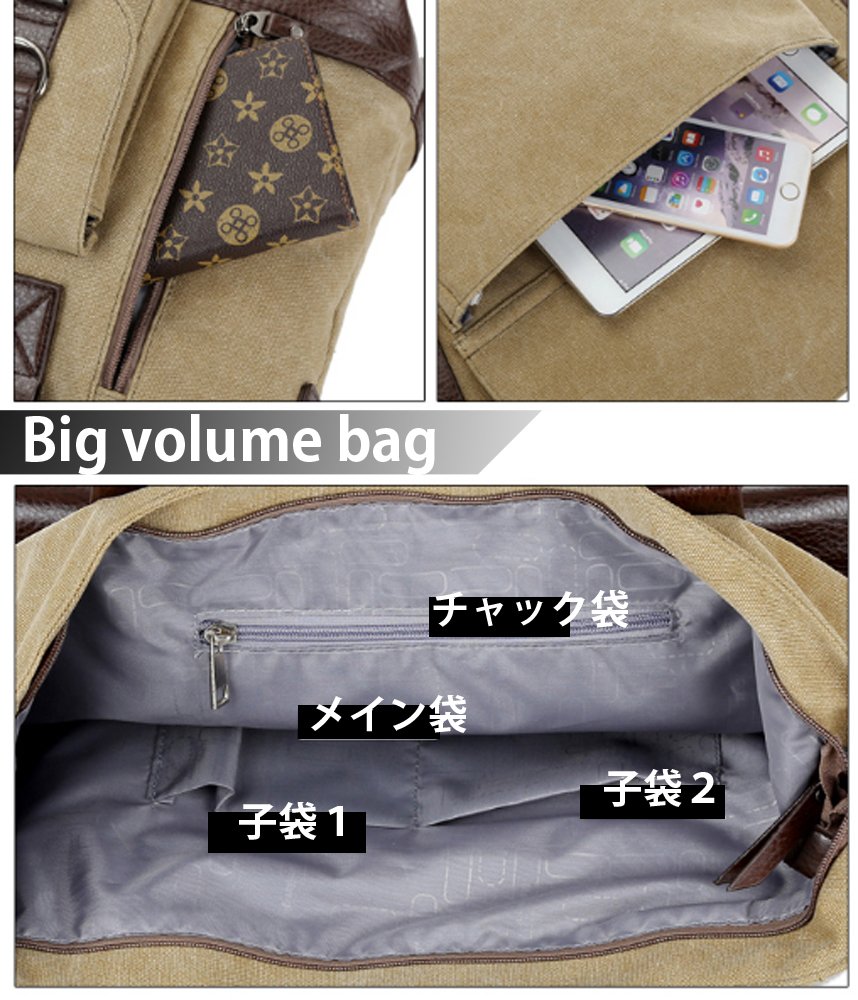 【Material】: Canvas background & PU leather 【Size】: Approx W 45 cm x H 30 cm x D 15.5 cm