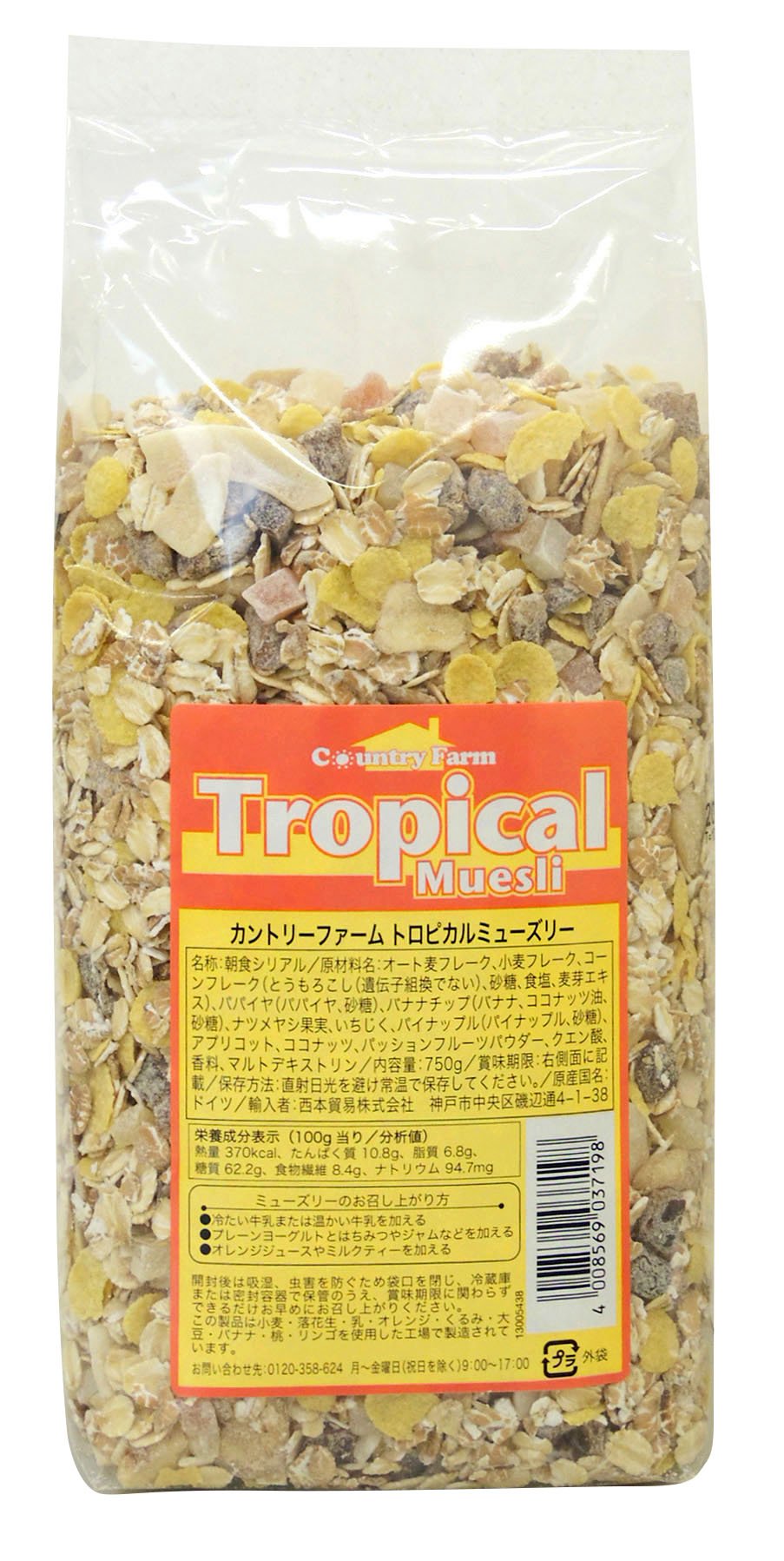 It is a muesli full of fruits containing figs, dates and apricots, mainly with tropical fruits such as papaya, pineapple and banana.