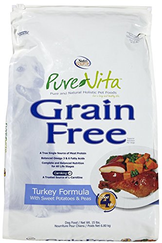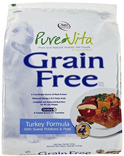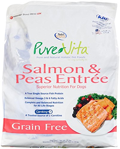 PureVita Grain Free Salmon Formula with Sweet Potatoes and Peas combines tasty Salmon with wholesome sweet potatoes and a select variety of berries, fruits and vegetables to deliver a healthy and delicious, easy to digest meal your dog will love. Carniking, a trusted source of L-Carnitine provides muscle and heart health for your dog. This true single source protein provides complete and balanced nutrition for all life stages of your dog. Pure Vita Grain Free Salmon Formula dog food is formulated to meet the nutritional levels established by the Association of American Feed Control Officials (AAFCO) Dog Food Nutrient Profiles for all life stages.Feature