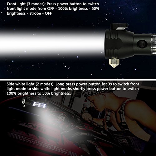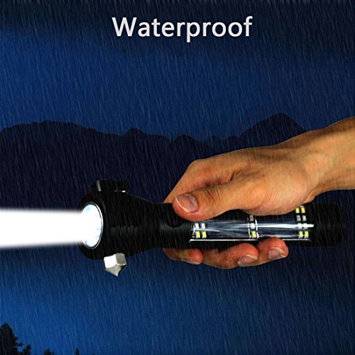 【Multi-functional Emergency Tool】This flashlight carries multiple identities and will be your handy helpers during any SOS situation – a bright side light, a red warning light, tactical cutting knife, attack hammer, backup compass.