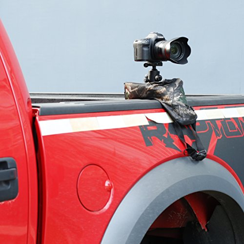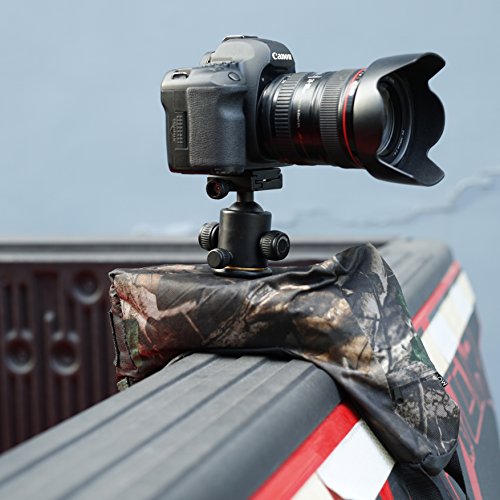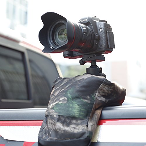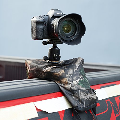 Studio : Movo Publisher : Movo Binding : Misc. Product Description The Movo Photo Camera Beanbag is a versatile, go-anywhere support for your camera or camcorder. Our advanced camouflage pattern makes this beanbag perfect for finding stable footing when you're out in nature. Designed to be used with or without the integrated 3/8" tripod mount for mounting your gimbal or ball head. The Movo Photo THB01 beanbag is designed for DSLR cameras with lenses smaller than 800mm. The unique U-shape that makes it perfect for mounting on narrow or round surfaces, such as a fence, a car door, or a tree branch. The inside of the "U" is made with a high-grip surface to help it maintain stability no matter where you set up. The beanbag features an easy-access, weather-protected zipper that allows you to add or remove filling material to adapt to any situation. The inside the bag is reinforced by a high-grade aluminum plate that the 1/2"-long, 3/8"-16 screw is built into. The plate is removable, allowing you to use the beanbag as a traditional, soft bean bag support.