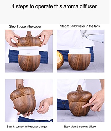 Morjava Q1 Cool Mist Humidifiers 300ML Ultrasonic Aroma Acorn wood with Light Aromatherapy Diffusers with Waterless Automatically Shut-off